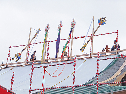 33年ぶりの大雪が降った為、数日前にはまだ瓦を葺く前の屋根に20cm程の雪が積もっておりましたが、当日は晴天となり、200名を超える御参拝の皆様も大変喜ばれておられました。