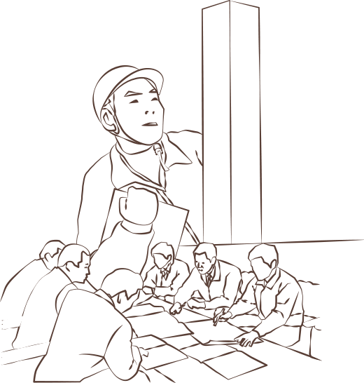 工事を進めるには、建物のプラン作成、資金集めなど、様々な作業が必要となります。